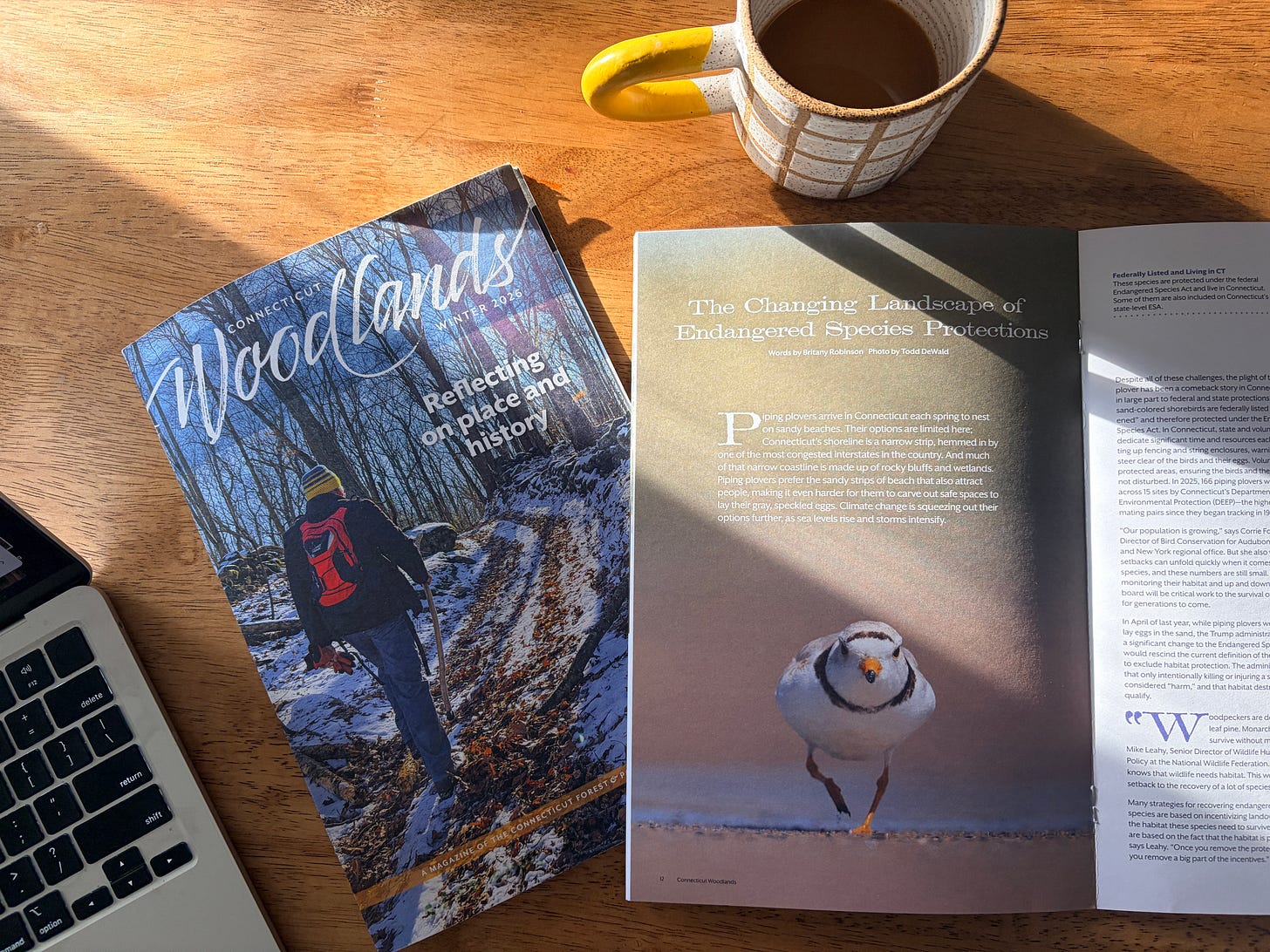 If you have a story that would be of interest to people in Connecticut (which might be more regionally-based, stretching beyond the borders of the state), I’d love to hear about it. Not from the area but passing through? Pitches from visitors to the region are also welcome! We love a story that somehow incorporates a blue-blazed trail. Or, perhaps you want to write about a bigger environmental issue that faces Connecticut and the rest of the region or country. For example, in the winter issue, we covered changes being made to the Endangered Species Act, which will impact threatened species across the country. We focused on piping plovers nesting on Connecticut beaches and the local groups stepping up to protect them as federal regulations weaken. As long as there is a clear connection to Connecticut, I’m interested.