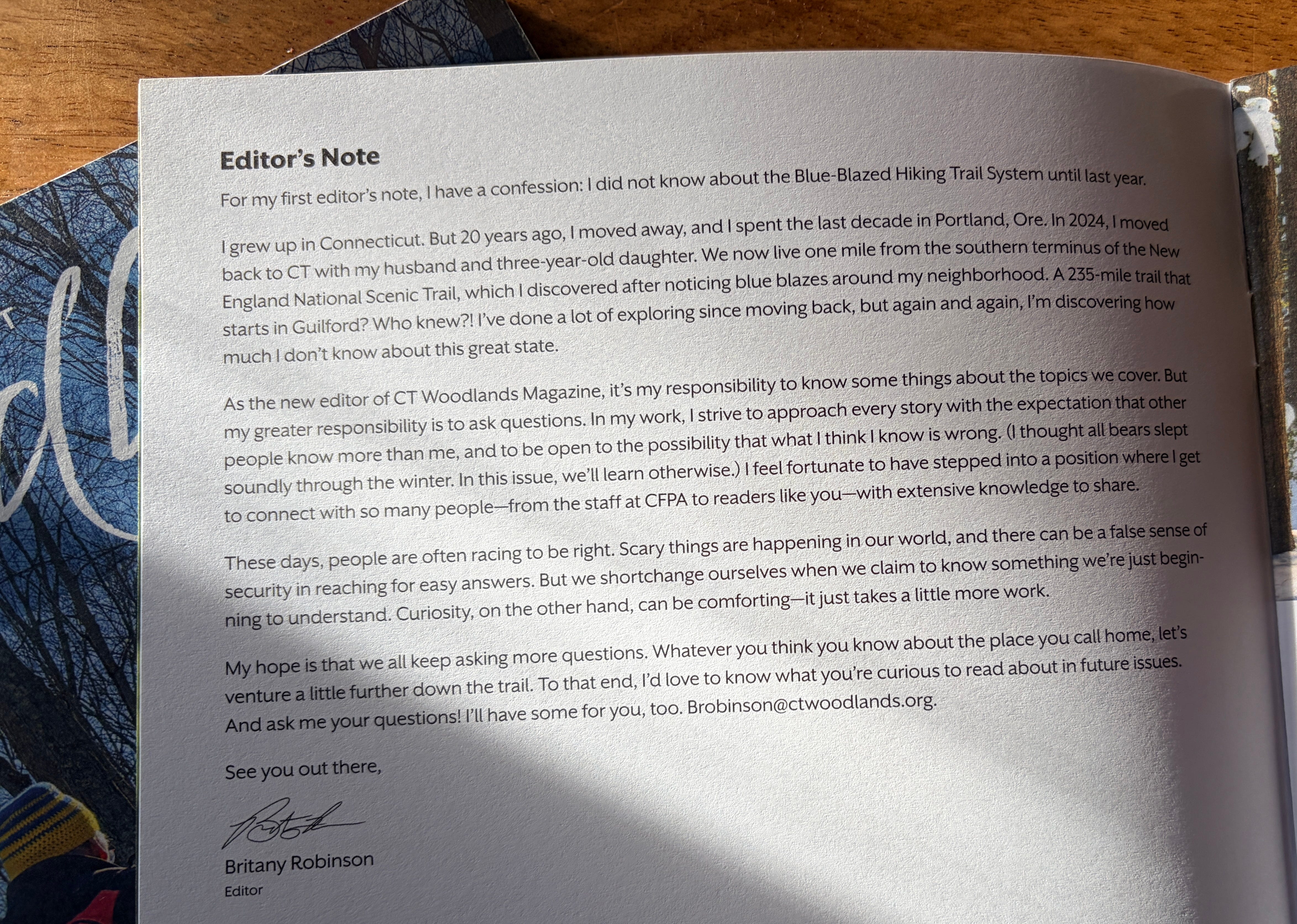 So anyways, today I thought I’d share my first Editor’s Note from a publication I’m thrilled to be working on. But before we get to that—an invitation to pitch me! And no, you don’t have to live in Connecticut to write for CT Woodlands magazine.